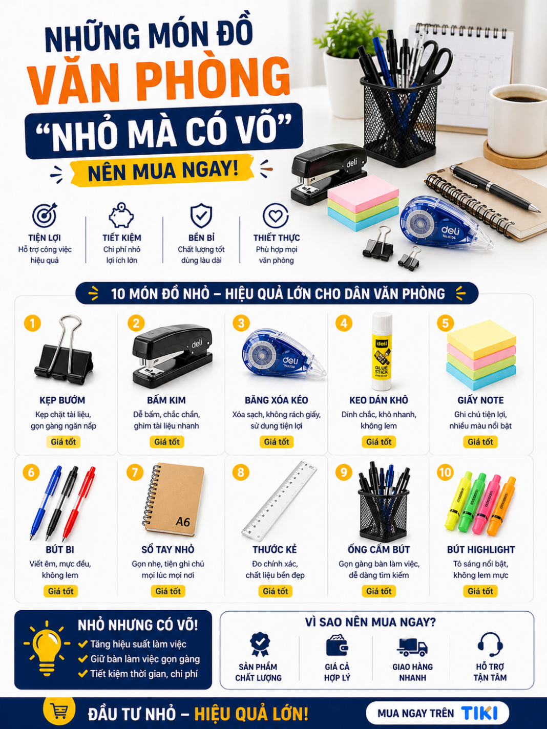 Trong môi trường công sở hiện đại, năng suất không chỉ đến từ phần mềm hay thiết bị đắt tiền. Đôi khi, những món văn phòng phẩm nhỏ, giá rẻ lại là thứ tạo ra khác biệt rõ rệt trong cách bạn tổ chức và xử lý công việc mỗi ngày.